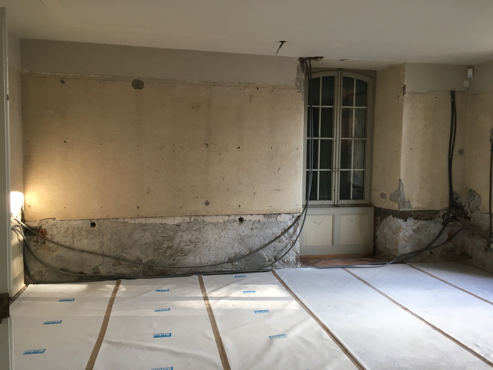 - Einbau einer Zentralheizung im ganzen Gebäude sowie Sanierung der gesamten Elektro- und Sanitärinstallation. Koordination der äusserst schwierigen Leitungsführung.